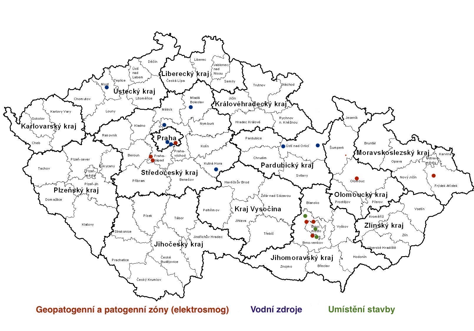 Lokality detekcí geopatogenních zón a vodních zdrojů
